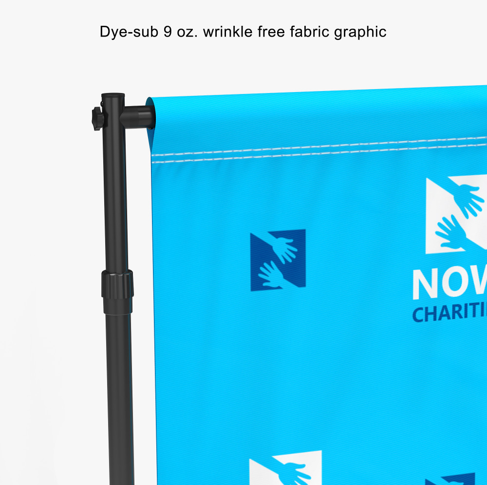 Our Large Tube Back Drop stands apart from the competition. While other backdrops on the market are flimsy 1" tubing, B2sign backdrops have telescoping 1.625" diameter poles for market best stability. This display can be adjusted easily to fit a range of graphic sizes on our 9oz wrinkle free dyesub material. Great for events on the go the stand packs up neatly into the free carry bag, and assembles in just a few minutes. It's popular for use as a step and repeat, photo backdrop or tradeshow display.